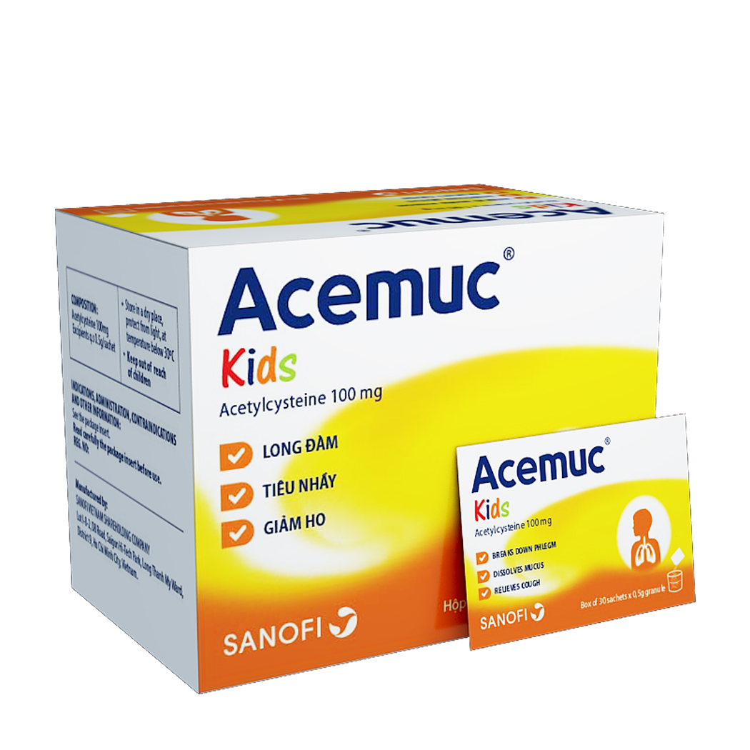 Thành phần: Acetylcystein 100mg, tá dược vừa đủ 1 gói.