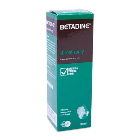 – BETADINE Throat Spray được chỉ định để điều trị các bệnh nhiễm trùng cấp tính niêm mạc miệng và họng bao gồm viêm miệng, viêm nướu, loét miệng aphter, viêm họng, viêm amiđan, nhiễm nấm Candida, cảm lạnh thông thường và cúm.